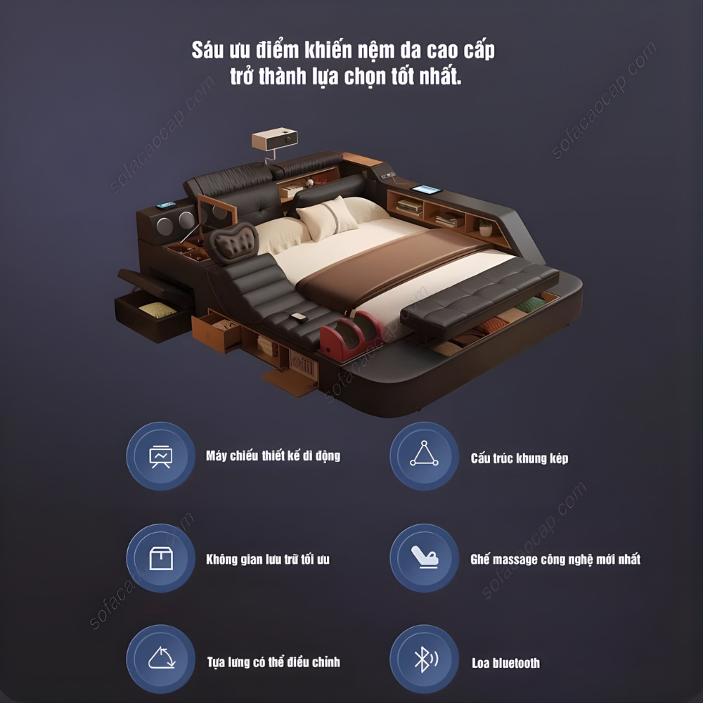 Và ngay sau đây, Nội Thất Moda sẽ cùng anh chị đi sâu vào từng công năng cụ thể trên giường ngủ cao cấp có ghế massage GM 25.