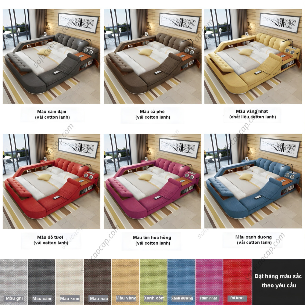 Không gò bó trong những gam màu truyền thống, giường thông minh GMX33 mang đến bảng màu cực kỳ trẻ trung và đa dạng: Xám đậm, Cafe, Vàng, Đỏ tươi, Tím hoa hồng và Xanh dương.