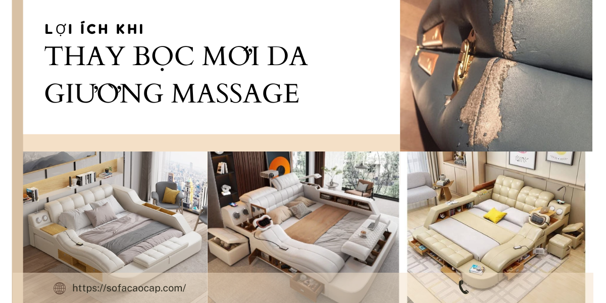 Thay bọc mới da giường massage là giải pháp hiệu quả giúp phục hồi vẻ ngoài sang trọng và kéo dài tuổi thọ cho sản phẩm. Giường massage là một thiết bị chăm sóc sức khỏe tuyệt vời, giúp thư giãn cơ thể. Tuy nhiên, sau thời gian dài sử dụng, lớp da giường massage có thể bị mài mòn, bong tróc hoặc xuống cấp. Lúc này dịch vụ thay da giường massage trở nên cần thiết để khôi phục lại diện mạo cho ghế và đảm bảo chất lượng sử dụng.